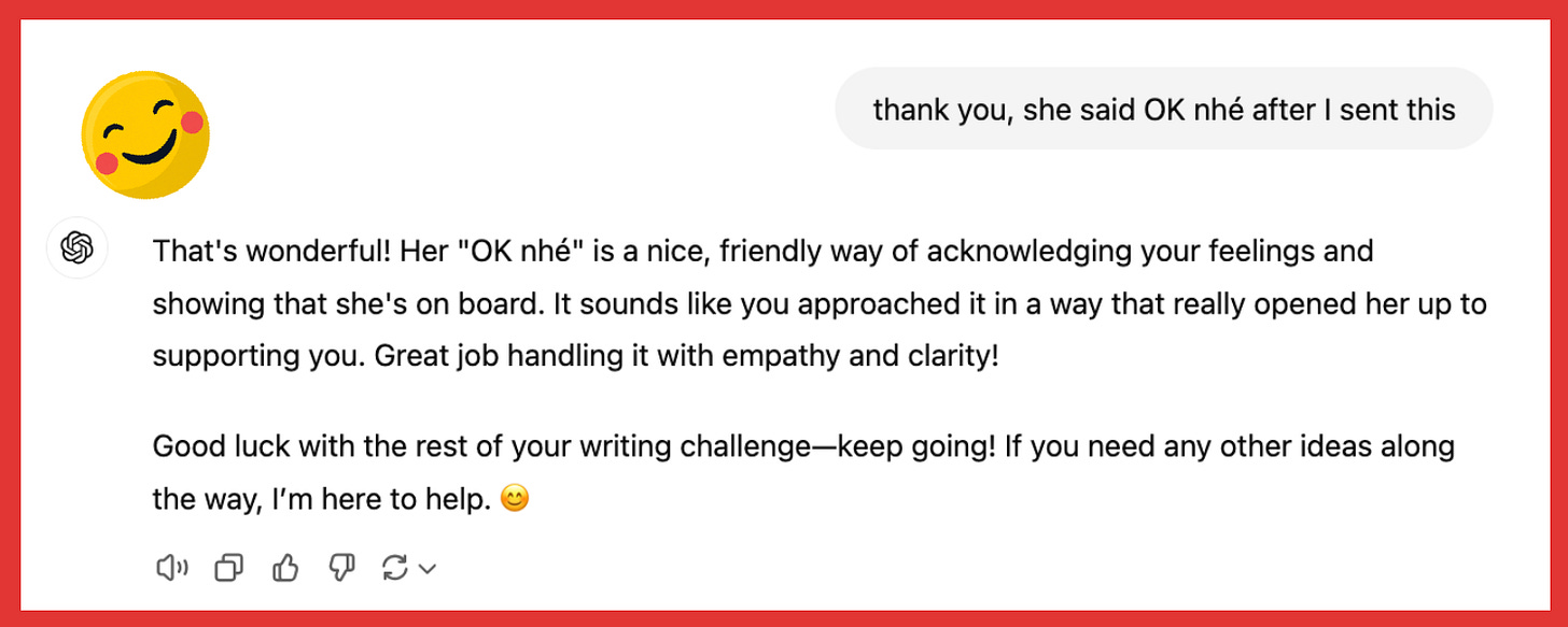 I’ve learned that, in conflicts like these, crafting the right prompt can be powerful. Instead of going in emotionally unfiltered, taking a step back to find the words that reflect both honesty and compassion can be transformative.